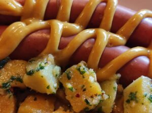 • Platos aptos para personas celíacas (sin TACC), elaborados con especial atención como el Pan de carne alemán o Leberkäse, Ensalada Heringssalat, Sopa Bortsch, Codillo de cerdo ahumado y una gran variedad de embutidos.